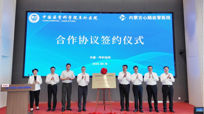 8月18日,通用技術集團所屬內蒙古心腦血管醫院與中國醫學科學院阜外醫院在呼和浩特市舉行心血管病技術培訓中心簽約揭牌儀式。集團總經理、黨組副書記崔志成,內蒙古自治區衛生健康委黨組書記、主任劉勇,呼和浩特市委副書記、市長賀海東,國家心血管病中心、中國醫學科學院阜外醫院黨委書記鄭哲出席儀式并為培訓中心揭牌。集團副總經理、黨組成員姚建紅主持儀式。此次簽約是集團進一步深化落實健康中國戰略、持續優化集團心血管專科建設的重要舉措,雙方將聚焦心血管病防治及醫療服務,在人才培養、技術引進、教學培訓、遠程醫學等領域深入開展合作,著力推動優質醫療資源擴容下沉。崔志成一行還拜訪了內蒙古自治區黨委常委、呼和浩特市委書記包鋼,雙方圍繞持續深化醫療康養、生物制藥、裝備制造等領域合作,積極搭建人工智能應用場景,推進醫療數據開發、藥物生產研發等產業落地進行了深入交流。中國醫藥、通用健康公司,集團辦公室相關負責人參加上述活動。