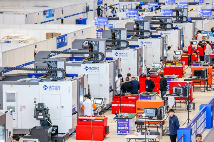 作為本屆大賽戰(zhàn)略合作伙伴,通用技術(shù)集團為數(shù)控銑、數(shù)控車、制造團隊挑戰(zhàn)賽及工業(yè)機械四項重點賽項提供了82臺自主研發(fā)的高端數(shù)控機床,涵蓋五軸加工中心、數(shù)控車床、數(shù)控銑床等核心設(shè)備。